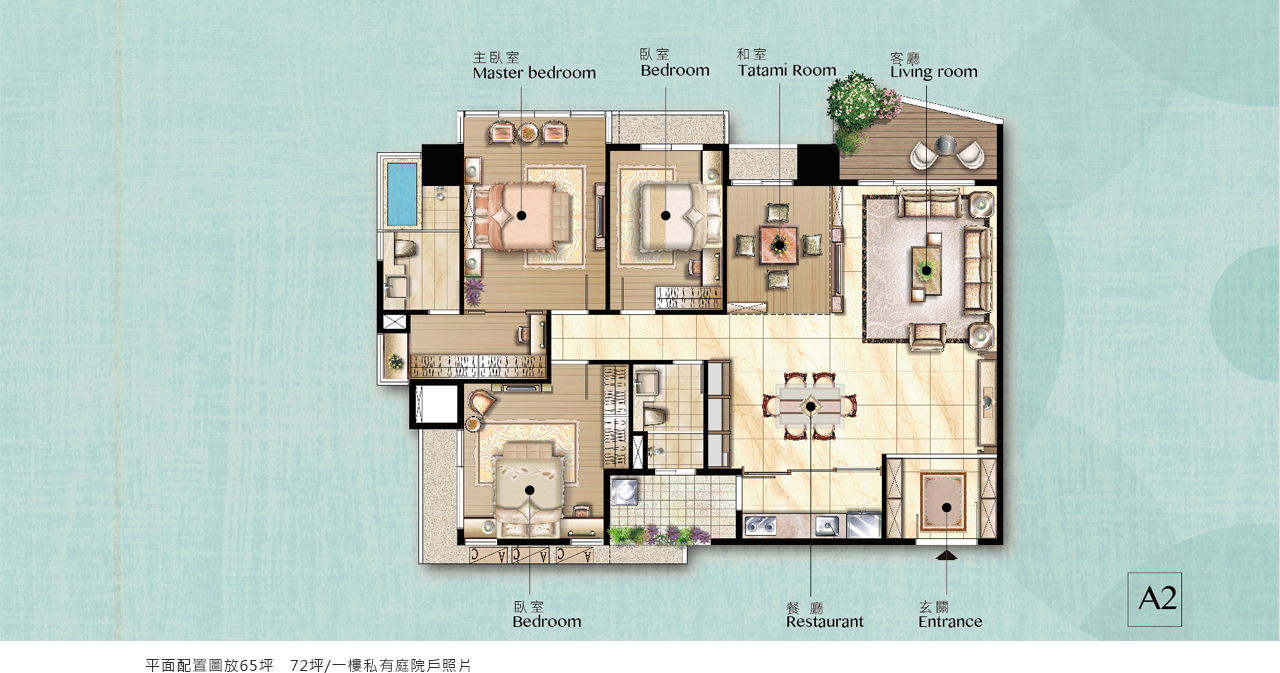 四季景觀濃蔭中庭,流水清風花草撲香國際景觀大師億元打造500坪綠茵水景中庭,30年原生大樹靜謐相伴