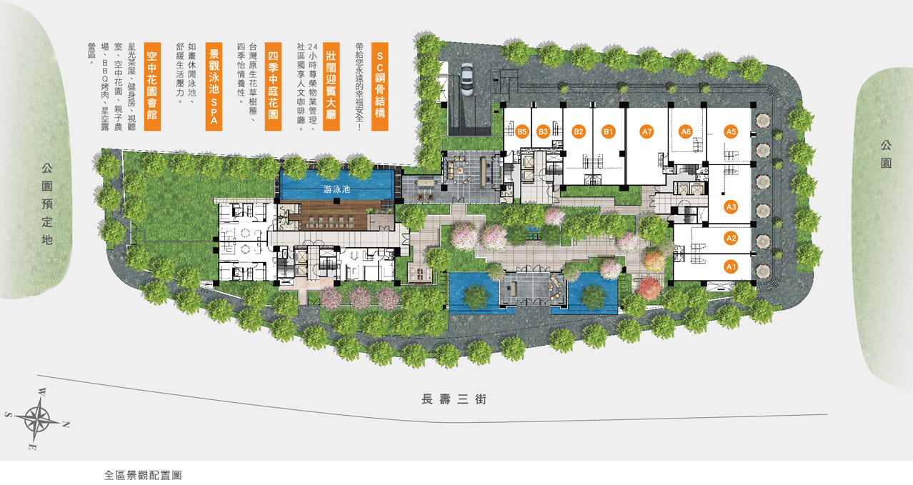 綠意中庭大樹庭園360坪大樹中庭花園,綠意盎然,在微風徐徐吹拂下,領略四季自然美好風情