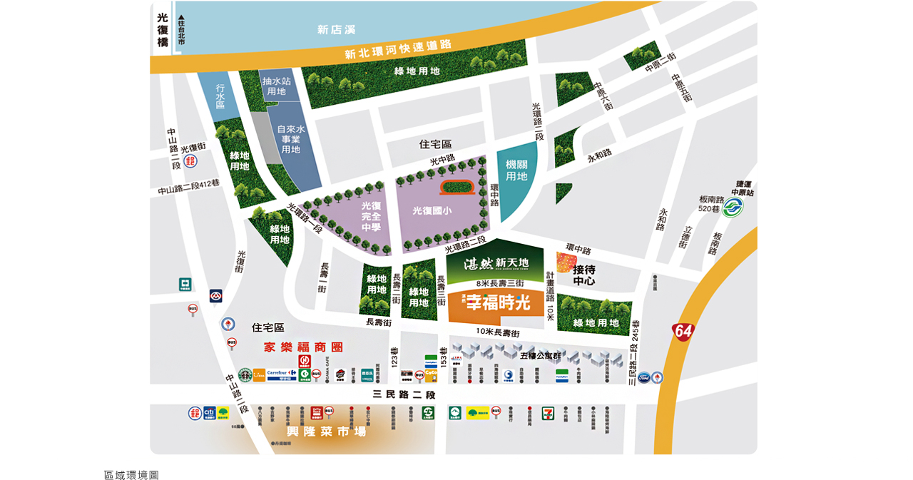 串聯大台北捷運網聽見都市的心跳未來捷運環狀線中原站 2站就到板橋捷運高鐵站5分鐘行車光復橋直達台北 3分鐘64、65快速道路,9條公車路線 城市輕旅行 省時間 多慢活